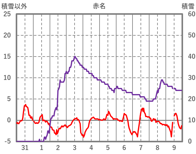 | 日 | 時 | 気温 | 降水 | 風向/風速 | 日照 | 積雪 | 降雪 |