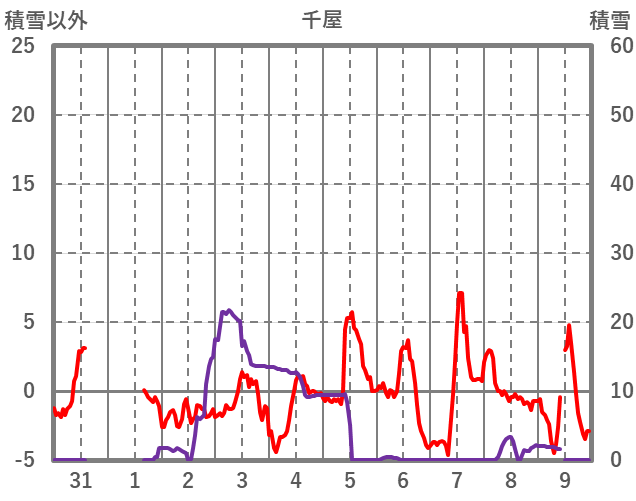 | 日 | 時 | 気温 | 降水 | 風向/風速 | 日照 | 積雪 | 降雪 |