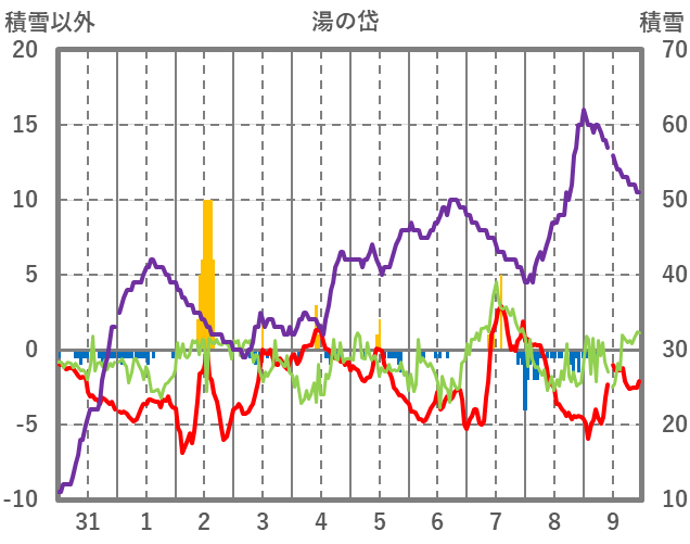 | 日 | 時 | 気温 | 降水 | 風向/風速 | 日照 | 積雪 | 降雪 |