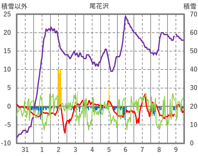 | 日 | 時 | 気温 | 降水 | 風向/風速 | 日照 | 積雪 | 降雪 |