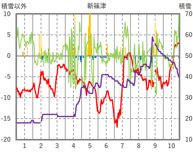 | 日 | 時 | 気温 | 降水 | 風向/風速 | 日照 | 積雪 | 降雪 |
