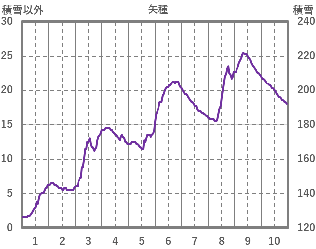 | 日 | 時 | 気温 | 降水 | 風向/風速 | 日照 | 積雪 | 降雪 |