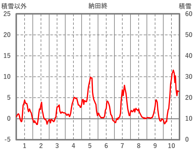 | 日 | 時 | 気温 | 降水 | 風向/風速 | 日照 | 積雪 | 降雪 |