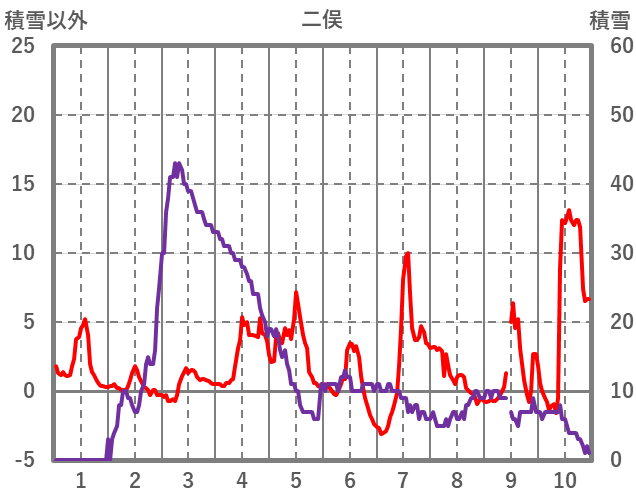 | 日 | 時 | 気温 | 降水 | 風向/風速 | 日照 | 積雪 | 降雪 |