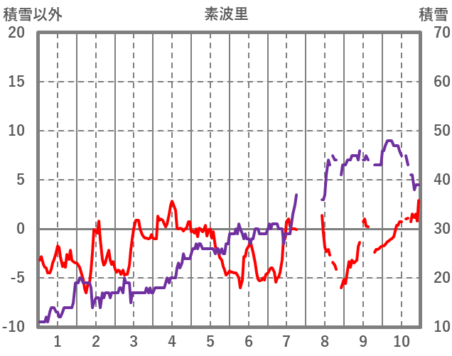 | 日 | 時 | 気温 | 降水 | 風向/風速 | 日照 | 積雪 | 降雪 |