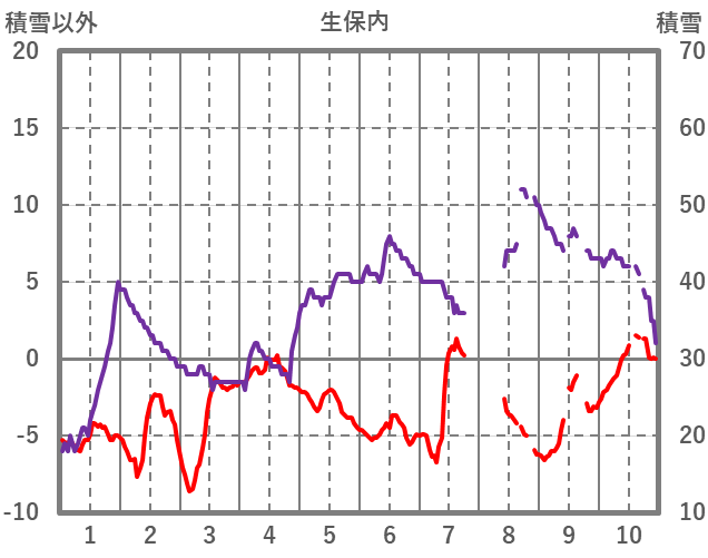 | 日 | 時 | 気温 | 降水 | 風向/風速 | 日照 | 積雪 | 降雪 |