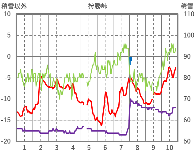 | 日 | 時 | 気温 | 降水 | 風向/風速 | 日照 | 積雪 | 降雪 |