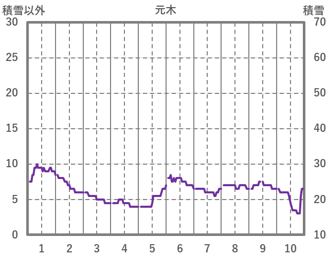 | 日 | 時 | 気温 | 降水 | 風向/風速 | 日照 | 積雪 | 降雪 |