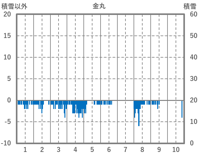 | 日 | 時 | 気温 | 降水 | 風向/風速 | 日照 | 積雪 | 降雪 |