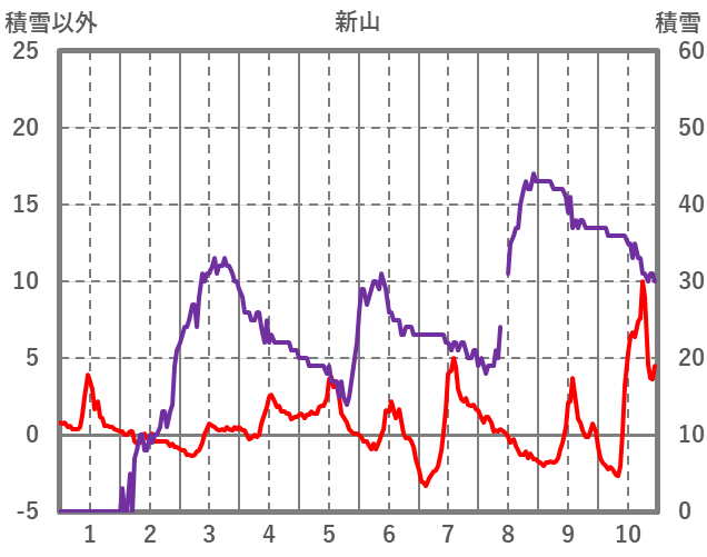 | 日 | 時 | 気温 | 降水 | 風向/風速 | 日照 | 積雪 | 降雪 |