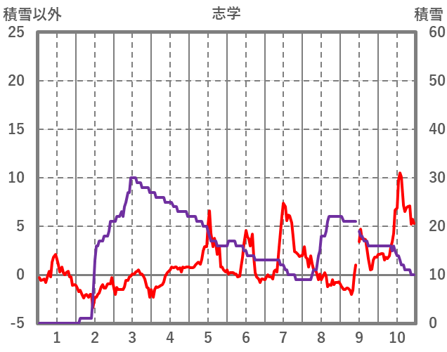 | 日 | 時 | 気温 | 降水 | 風向/風速 | 日照 | 積雪 | 降雪 |
