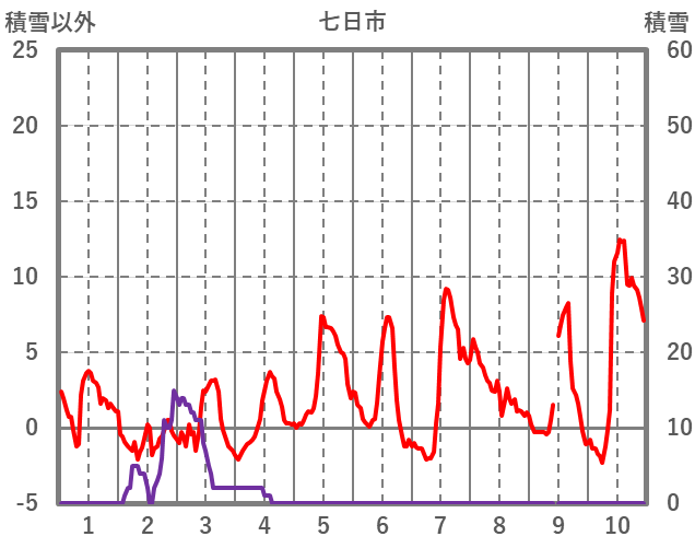 | 日 | 時 | 気温 | 降水 | 風向/風速 | 日照 | 積雪 | 降雪 |