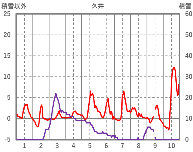 | 日 | 時 | 気温 | 降水 | 風向/風速 | 日照 | 積雪 | 降雪 |
