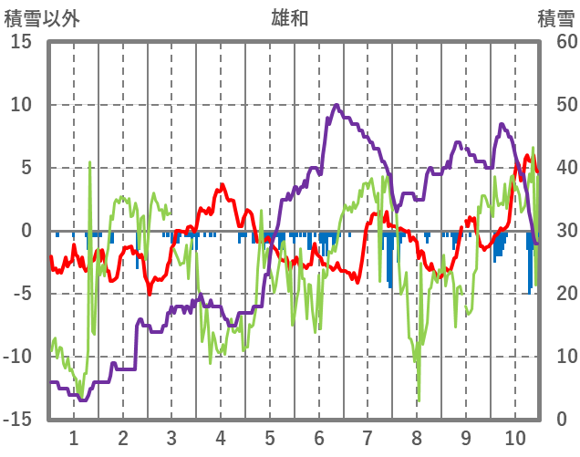 | 日 | 時 | 気温 | 降水 | 風向/風速 | 日照 | 積雪 | 降雪 |