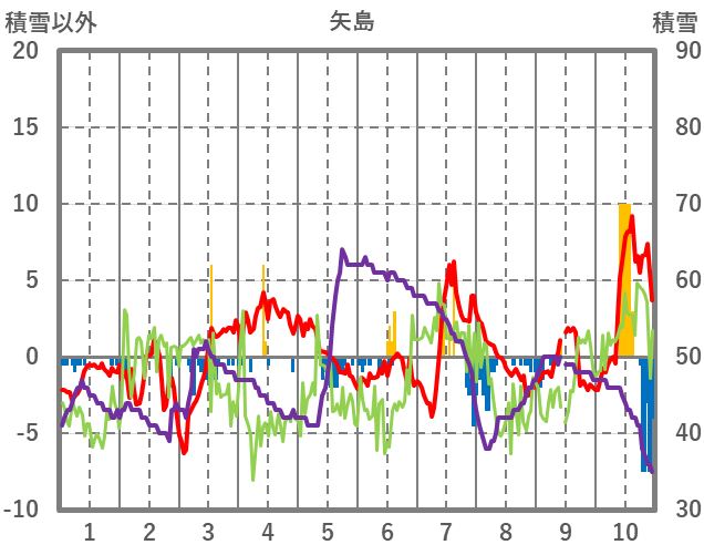| 日 | 時 | 気温 | 降水 | 風向/風速 | 日照 | 積雪 | 降雪 |
