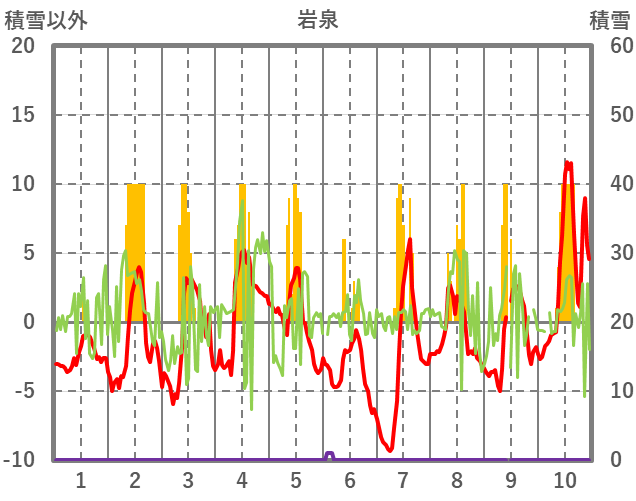 | 日 | 時 | 気温 | 降水 | 風向/風速 | 日照 | 積雪 | 降雪 |