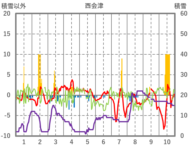 | 日 | 時 | 気温 | 降水 | 風向/風速 | 日照 | 積雪 | 降雪 |