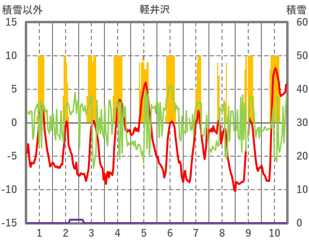 | 日 | 時 | 気温 | 降水 | 風向/風速 | 日照 | 積雪 | 降雪 |