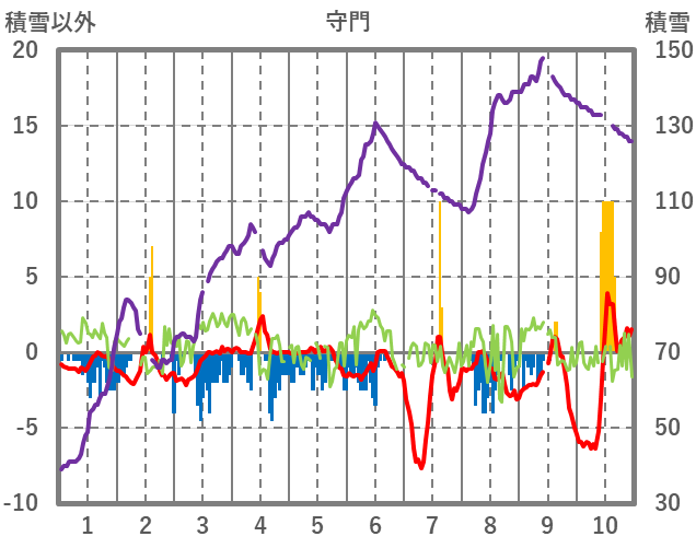 | 日 | 時 | 気温 | 降水 | 風向/風速 | 日照 | 積雪 | 降雪 |