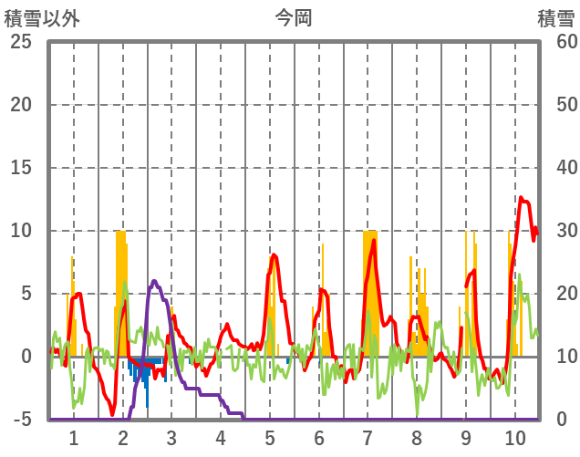 | 日 | 時 | 気温 | 降水 | 風向/風速 | 日照 | 積雪 | 降雪 |