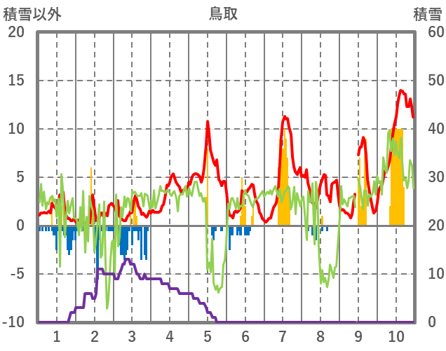 | 日 | 時 | 気温 | 降水 | 風向/風速 | 日照 | 積雪 | 降雪 |