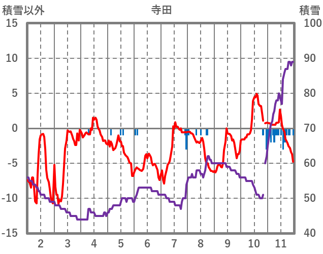 | 日 | 時 | 気温 | 降水 | 風向/風速 | 日照 | 積雪 | 降雪 |