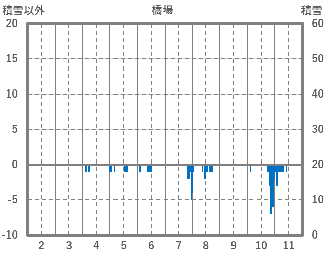 | 日 | 時 | 気温 | 降水 | 風向/風速 | 日照 | 積雪 | 降雪 |