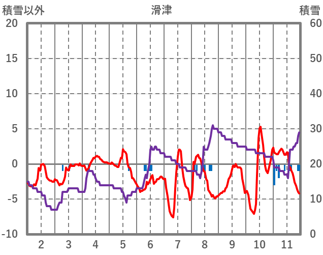 | 日 | 時 | 気温 | 降水 | 風向/風速 | 日照 | 積雪 | 降雪 |