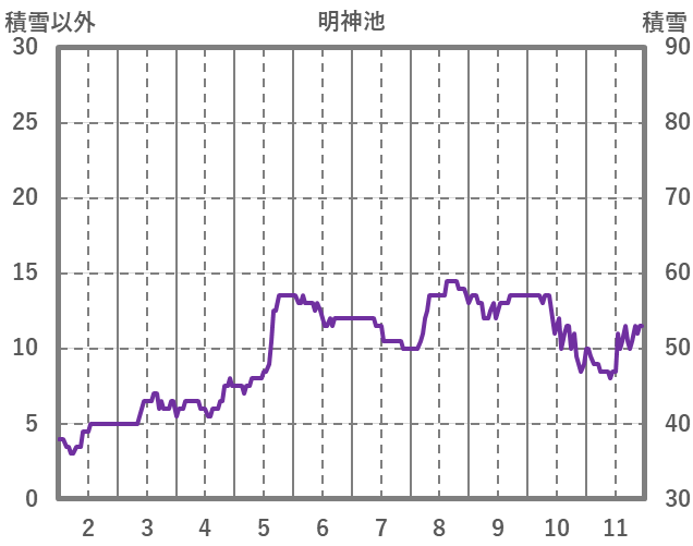 | 日 | 時 | 気温 | 降水 | 風向/風速 | 日照 | 積雪 | 降雪 |