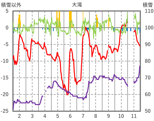 | 日 | 時 | 気温 | 降水 | 風向/風速 | 日照 | 積雪 | 降雪 |