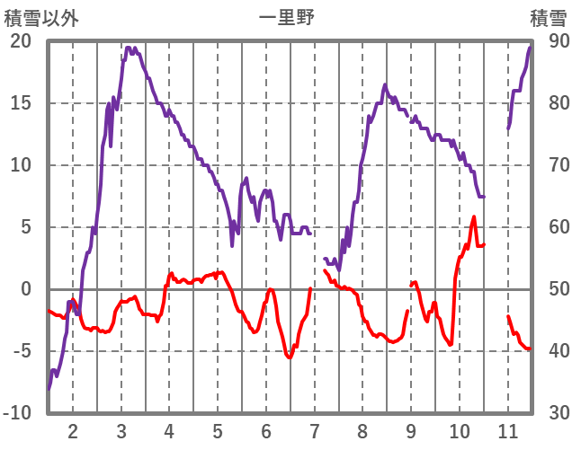 | 日 | 時 | 気温 | 降水 | 風向/風速 | 日照 | 積雪 | 降雪 |