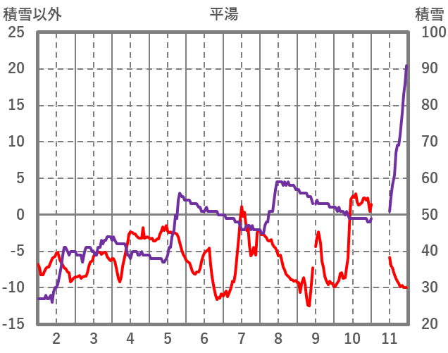 | 日 | 時 | 気温 | 降水 | 風向/風速 | 日照 | 積雪 | 降雪 |