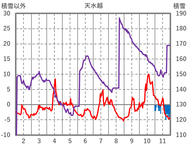 | 日 | 時 | 気温 | 降水 | 風向/風速 | 日照 | 積雪 | 降雪 |