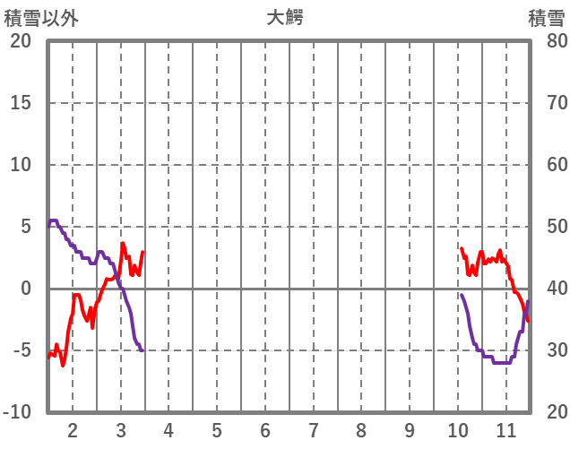 | 日 | 時 | 気温 | 降水 | 風向/風速 | 日照 | 積雪 | 降雪 |