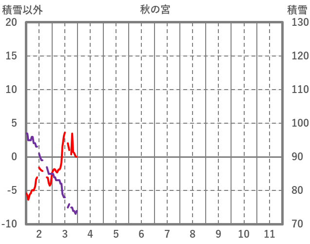 | 日 | 時 | 気温 | 降水 | 風向/風速 | 日照 | 積雪 | 降雪 |