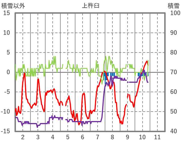 | 日 | 時 | 気温 | 降水 | 風向/風速 | 日照 | 積雪 | 降雪 |