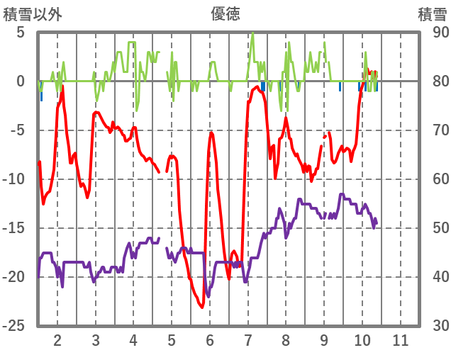 | 日 | 時 | 気温 | 降水 | 風向/風速 | 日照 | 積雪 | 降雪 |