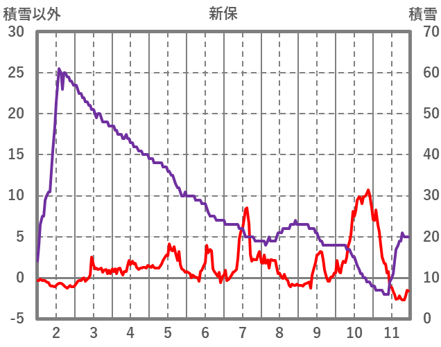| 日 | 時 | 気温 | 降水 | 風向/風速 | 日照 | 積雪 | 降雪 |
