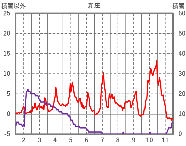 | 日 | 時 | 気温 | 降水 | 風向/風速 | 日照 | 積雪 | 降雪 |