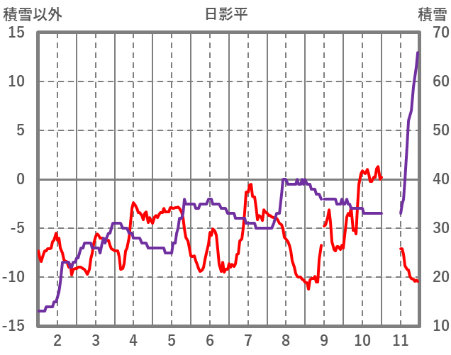 | 日 | 時 | 気温 | 降水 | 風向/風速 | 日照 | 積雪 | 降雪 |