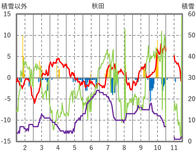 | 日 | 時 | 気温 | 降水 | 風向/風速 | 日照 | 積雪 | 降雪 |