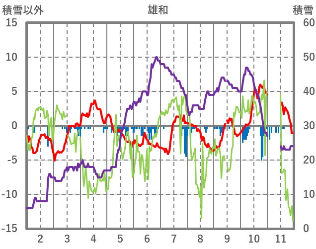 | 日 | 時 | 気温 | 降水 | 風向/風速 | 日照 | 積雪 | 降雪 |