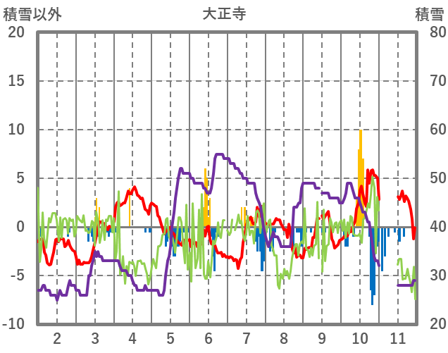 | 日 | 時 | 気温 | 降水 | 風向/風速 | 日照 | 積雪 | 降雪 |