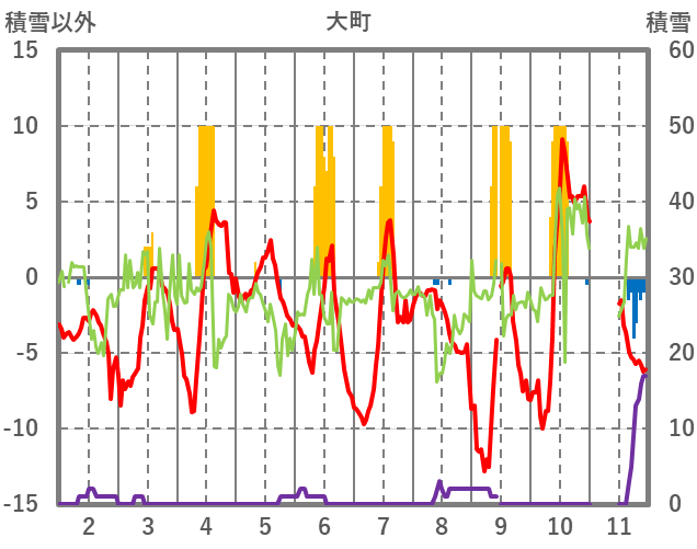 | 日 | 時 | 気温 | 降水 | 風向/風速 | 日照 | 積雪 | 降雪 |