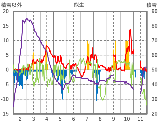 | 日 | 時 | 気温 | 降水 | 風向/風速 | 日照 | 積雪 | 降雪 |