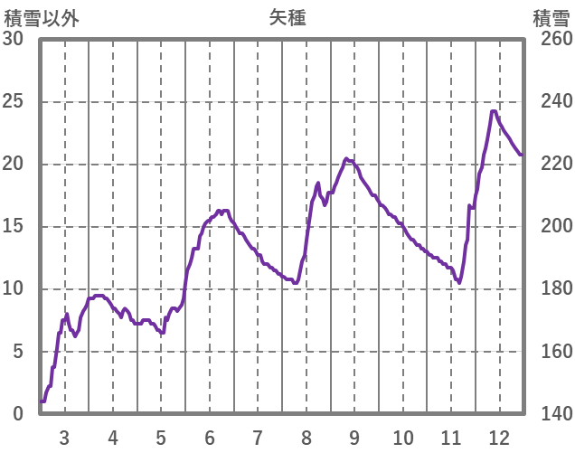 | 日 | 時 | 気温 | 降水 | 風向/風速 | 日照 | 積雪 | 降雪 |