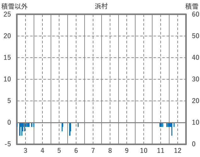 | 日 | 時 | 気温 | 降水 | 風向/風速 | 日照 | 積雪 | 降雪 |