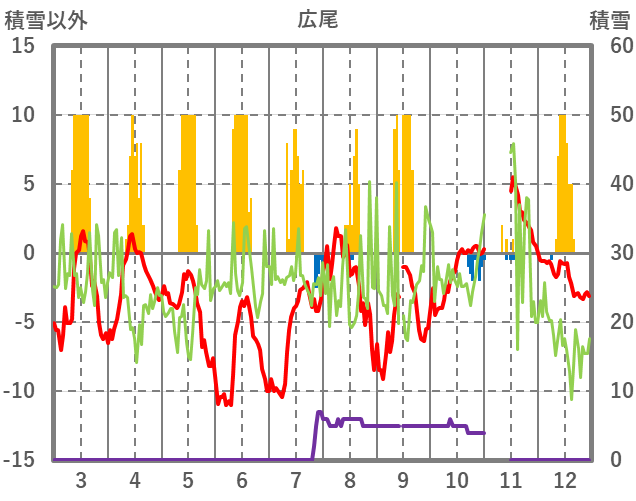 | 日 | 時 | 気温 | 降水 | 風向/風速 | 日照 | 積雪 | 降雪 |
