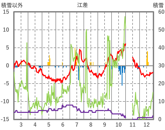 | 日 | 時 | 気温 | 降水 | 風向/風速 | 日照 | 積雪 | 降雪 |