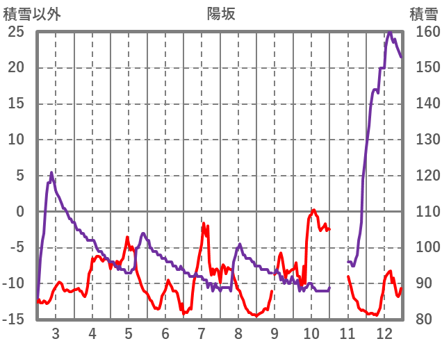 | 日 | 時 | 気温 | 降水 | 風向/風速 | 日照 | 積雪 | 降雪 |